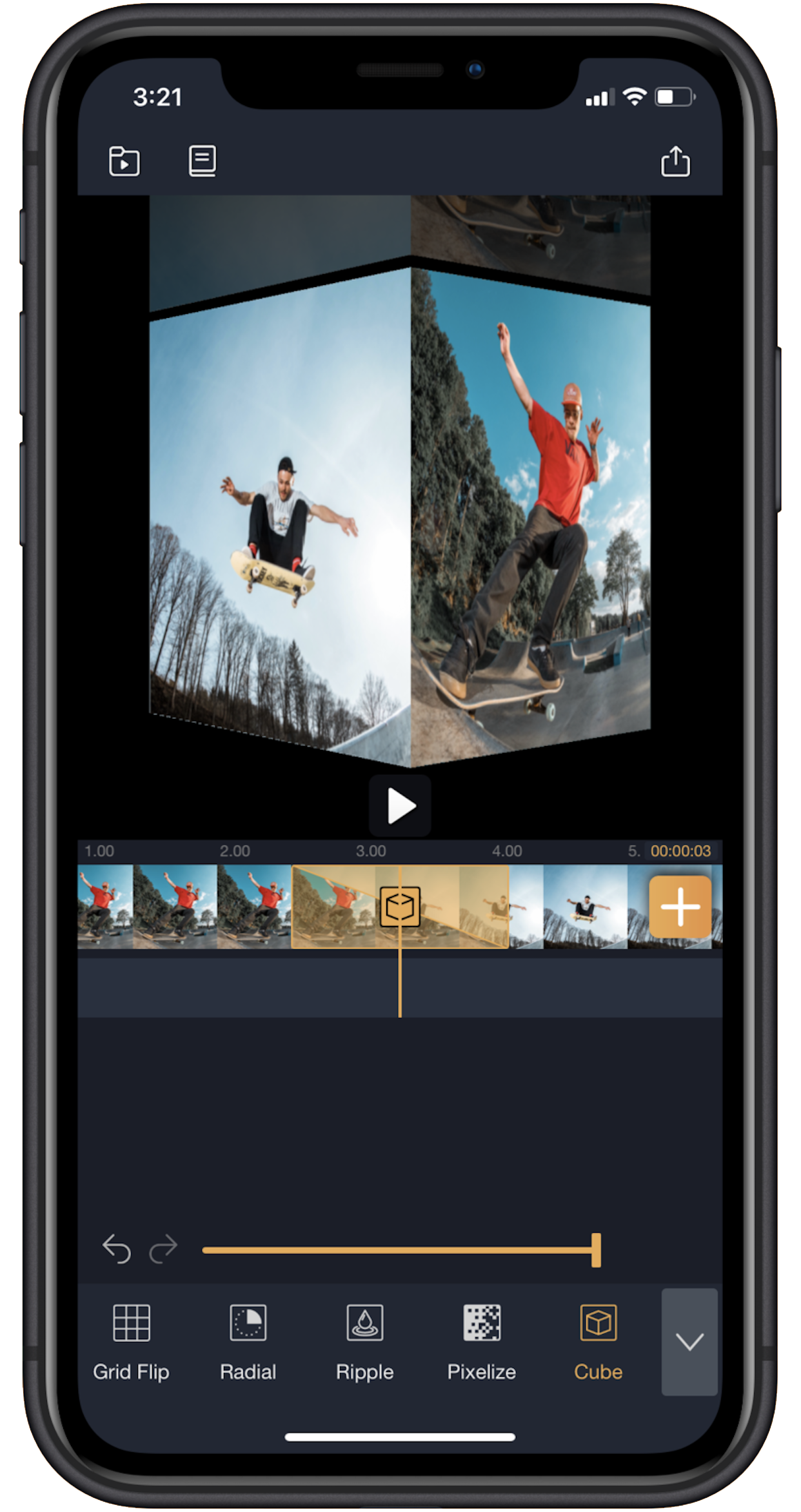 Split video, Delete a part, Adjust speed for fast and slow motion.